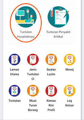 disebabkan pakcik sha nak buat tuntutan hospitalisasi, jadi bawah ni langkah - langkahnya. kalau nak buat tuntutan penyakit kritikal lain pula tau.
